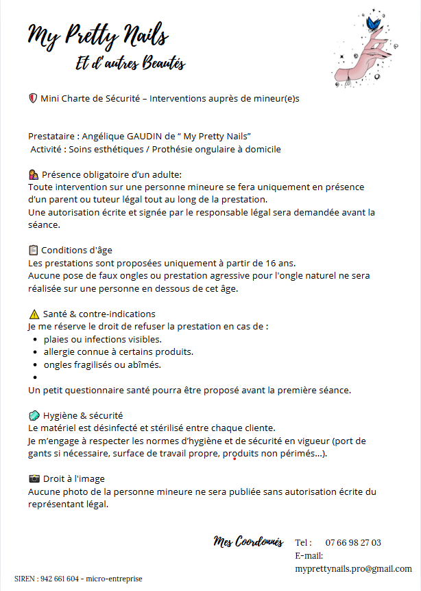 Mini Chartes de Sécurité – Interventions auprès de mineures :